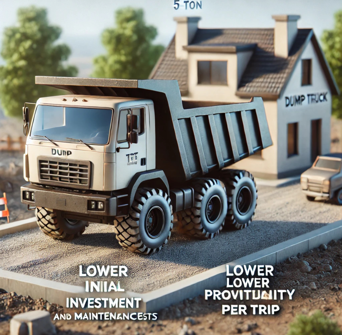 덤프트럭의 크기가 클수록 수익성이 높아질 수 있지만, 초기 투자비와 유지비도 상당히 높아집니다.
