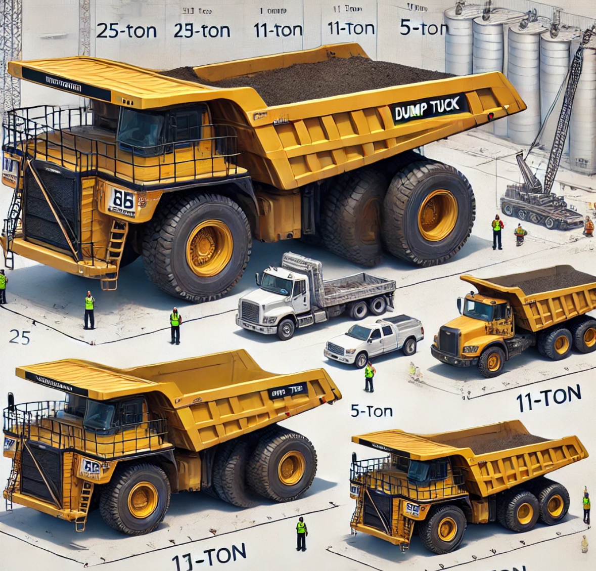 덤프트럭 25톤, 11톤, 5톤 기본 비교